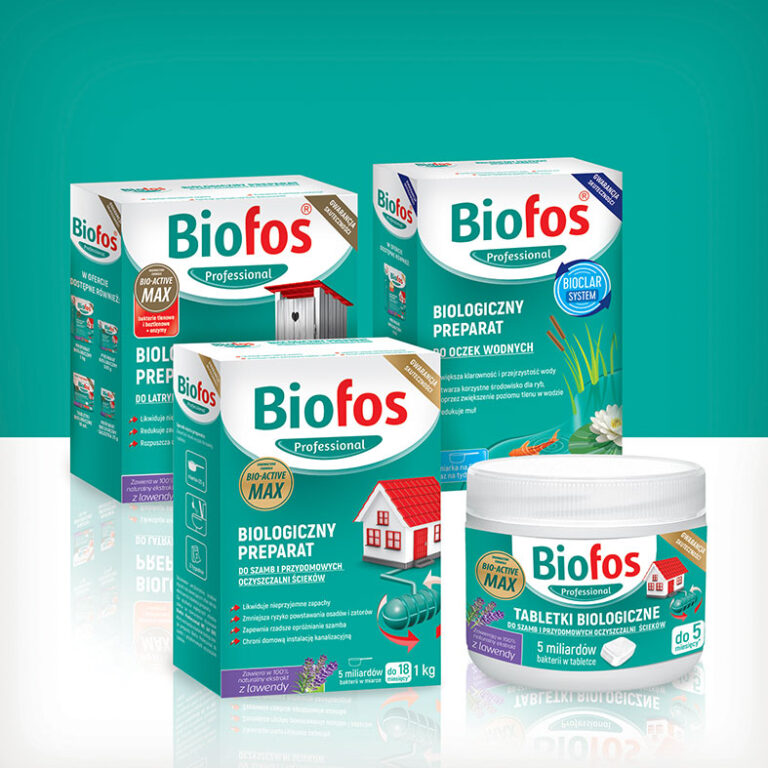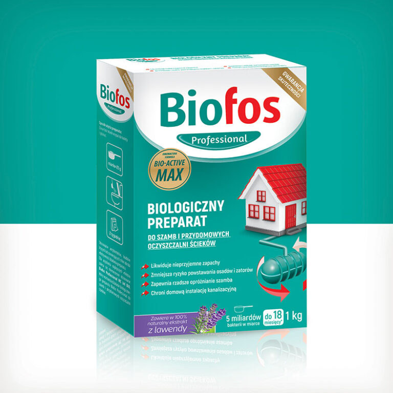 Produkty pod marką Biofos skierowane są dla właścicieli domków jednorodzinnych z własnymi oczyszczalniami ścieków. Opakowania oddają profesjonalny i zaawansowany charakter preparatów. Projekt obejmuje logo marki, dobór odpowiedniej kolorystyki i wykonanie szeregu ilustracji. W skład linii wchodzą bardzo różne formaty i typy opakowań co stanowiło dodatkowe wyzwanie projektowe.